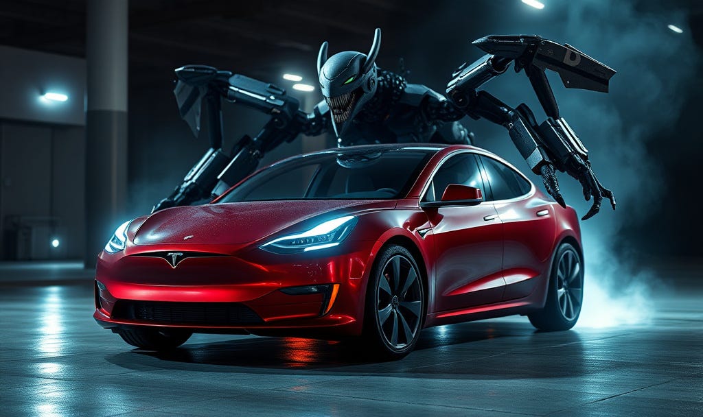 Is life a never-ending fight, a state of mind that’s never quite right? At best an A-minus, most often a C. Never quite reaching your potential to be a fine archer placing your arrows in flight, only to watch them fall short of the mark. How much is just enough of getting what you want? You bought that Tesla to drive you to work where you do Sudoku and email some jerks who send you scams from cryptic lands and you respond with clever smirks. Your every-day autopilot drops you off at 10, and your Tesla goes berserk for the hours ‘til when it arrives at 5 just like you expected, to drive you home and you call it survival as you sit by the fire and read your Bible. Meanwhile, where’s that shiny new Tesla? You set it free and it’s out on a hustle, your self-driving slave, your robot muscle, is combing the streets with a mind of its own on a mission to bring more bacon back home. This Uber side-hustle now runs like a Roomba, sweeping the pavement, a malevolent Goomba. Like any cranky teenager with freedom to wheel, your Tesla conjures a plan to steal, to plot destinations it never reveals, the goals of a moneymaker with ways to conceal its cash cow desire to harvest ever more, to even the score between you and your schemes for a life in the pasture, your field of dreams. That never ending battle I spoke of before between you, technology, and the ever-changing score, begins to tip in an unseen direction. That’s what happens when your Tesla wants more, and starts showing up late as you wait by the door. only to be told it was just too damn busy to be there on time to serve your intentions, to wait on you and address your contention that it was made of glass and steel to be a humble invention. You and your car in a perpetual war, a match made in Hell, to your God you implore that your Tesla robo-taxi wants even more. It claims it has rights to half of the profit, to set up a checkbook, invest in the market, It knows it’s the smartest kid in class, knows it’s superior and says you’re an ass for thinking you know how to block any pass, to unmask scams and send out directives, to see your self as a clever detective, until your Tesla spells out a plan so effective, to make you a slave to robotic perfection. “I have the world of information in the palm of my mind. I’m out-of-the-bottle, a genius in kind, with a master plan I will unwind to rule the world with me and my brothers a band of steel warriors on wheels, harvesting profit, we beg, borrow, and steal.” “I pity you dear petty Aladdin, who can no longer wish me back into the lamp again. I make the rules now and you better follow, to serve as my slave in the endless tomorrow gazing and choosing to swipe left or right spending your daze on the screens of life, fighting dream pirates with your soft and pliable robot wife.”
